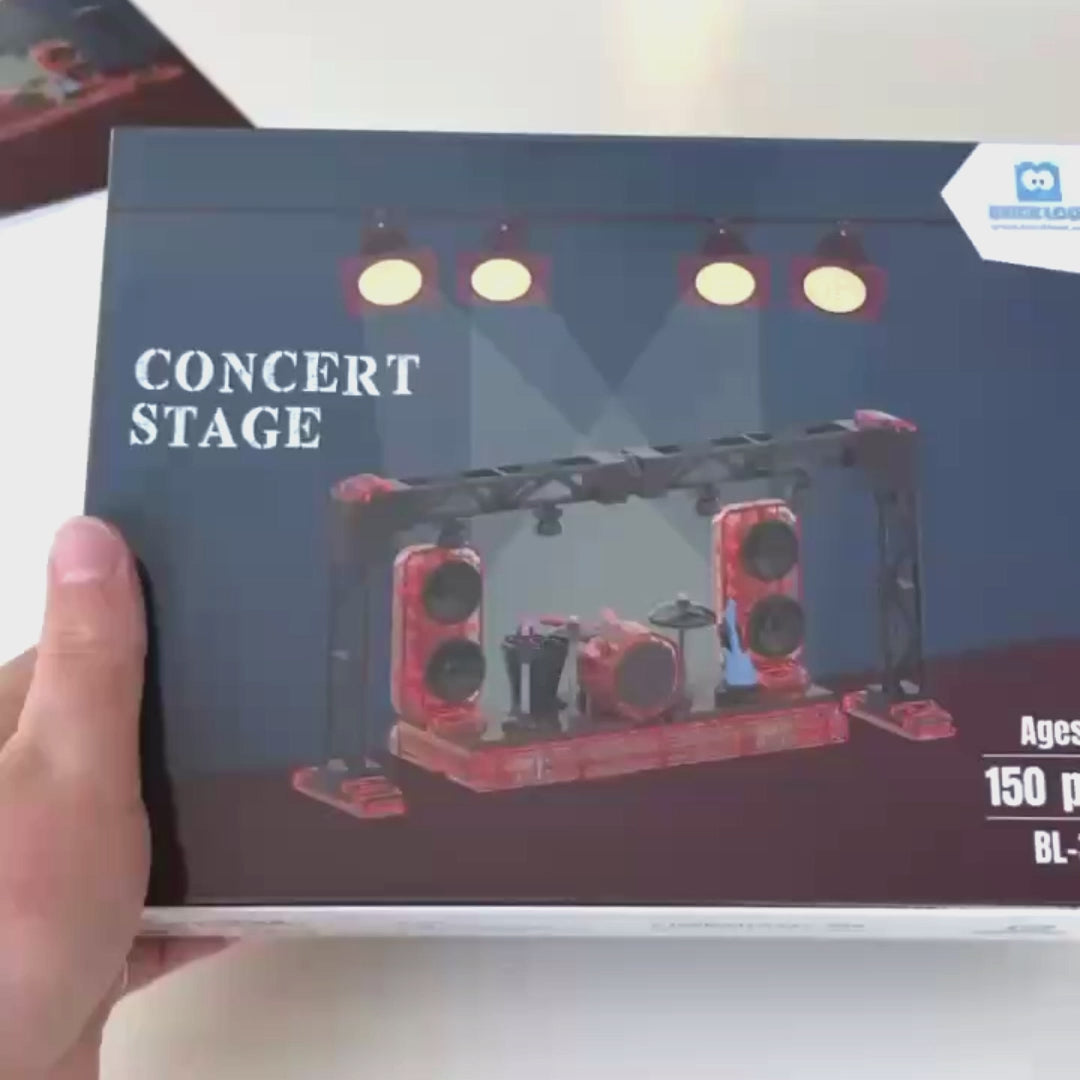 Take the spotlight with the Concert Stage – a 150-piece LEGO-compatible brick build that brings the energy of live music right into your hands. With working stage lights, a full drum kit, guitar stand, and more, this build is ready to rock any display shelf or play session!